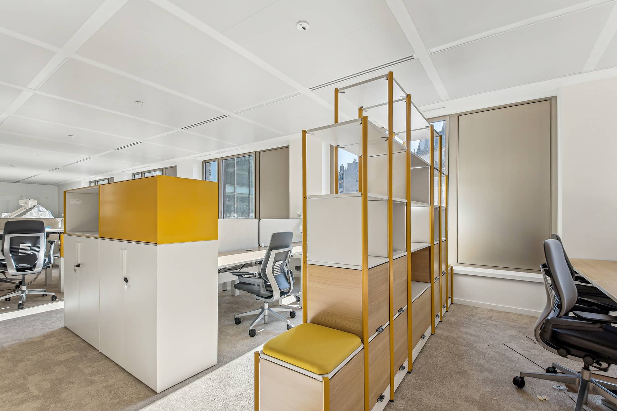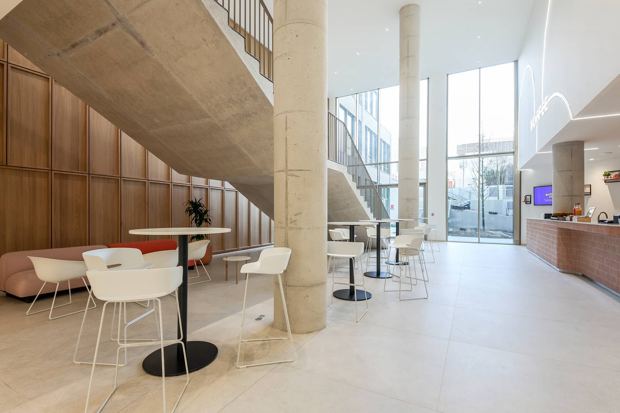 Le concept de l’architecture intérieure reprend les valeurs du groupe Bayard. À savoir : des coloris dynamiques, des matériaux durables (bois, résine, métal) et une personnalisation par entité. Les espaces de travail sont repensés en flex office pour favoriser la collaboration. Les zones sont flexibles et mutualisées. Les usages sont optimisés. Tout est pensé pour travailler ensemble de façon hybride et créative. Parella a proposé des solutions qui permettent d’adapter les lieux aux besoins évolutifs.