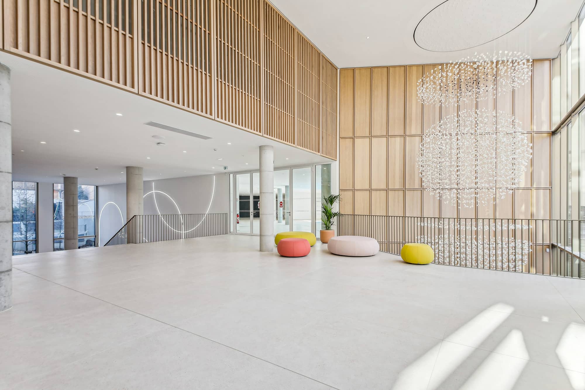 En prenant ce nouveau site de 8 600 m2, l’occasion est offerte à Bayard de revoir les modes de travail au sein de l’entreprise. C’est également l’opportunité d’affirmer son engagement RSE qui est, depuis 2023, société à mission. Pour l’aménagement intérieur, une attention est portée à la flexibilité, la communication, les échanges et la créativité. Des studios audio / vidéo, des salles connectées et une agora sont créés. L’architecture intérieure reflète les valeurs de Bayard, avec des couleurs dynamiques, des matériaux durables (bois, résine, métal) et une personnalisation par entité.