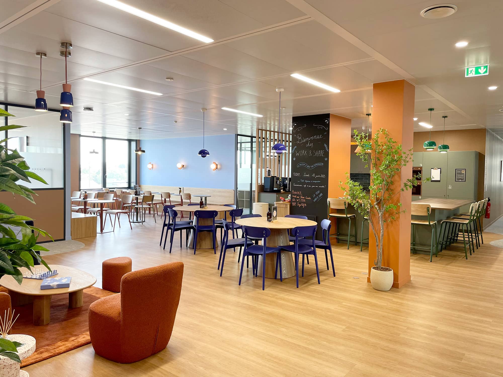 Le nouveau Work & Share est dédié aux entreprises de 2 à 150 collaborateurs. Les espaces sont pensés pour le bien-être des usagers et l’agilité. L’attention est portée à l’expérience utilisateur. Situé dans un immeuble premium, il dispose de bureaux privatifs (22) configurables de 2 à 24 postes, des salles de réunion entièrement modulables (4), des phone box (7) pour s’isoler, un grand bistrot convivial situé au cœur de l’espace, des alcôves de travail et zones de détente aménagées et un accès direct aux d’espaces extérieurs de l’immeuble et à la terrasse panoramique.