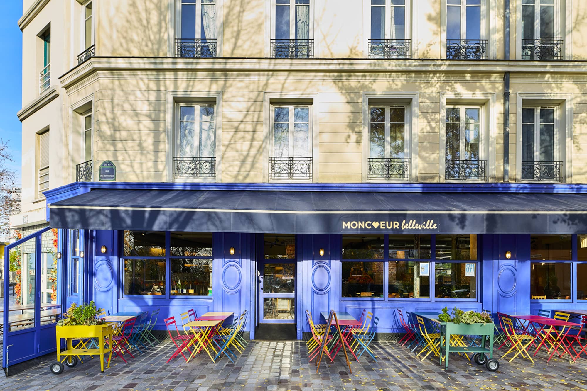 Tel un phare sur les hauteurs, Moncoeur Belleville veille sur la ville lumière, offrant un panorama enchanteur sur Paris. Sous la houlette de Valérie Bonal et sa famille, cette brasserie, devenue institutionnelle, incarne l’âme populaire et bohème du quartier, mêlant chaleur familiale et atmosphère conviviale, le tout en savourant la vue imprenable sur Paris. Autrefois boucherie, puis brasserie, ce lieu a vu défiler les époques et même servi de toile à des récits cinématographiques, tels que Cat’s Eyes. Avant sa métamorphose, son intérieur, usé par le temps, appelait à un renouveau. Les rafraîchissements superficiels n’avaient su le réchauffer, et seuls des volumes inexplorés subsistaient. Seule la terrasse panoramique, telle une étoile, continuait d’attirer les âmes fidèles. Le défi qui s’imposait à Sowen était d’insuffler une nouvelle vie à l’espace intérieur, d’en faire une destination vibrante, qu’elle soit sous le soleil d’été ou l’écrin de l’hiver.