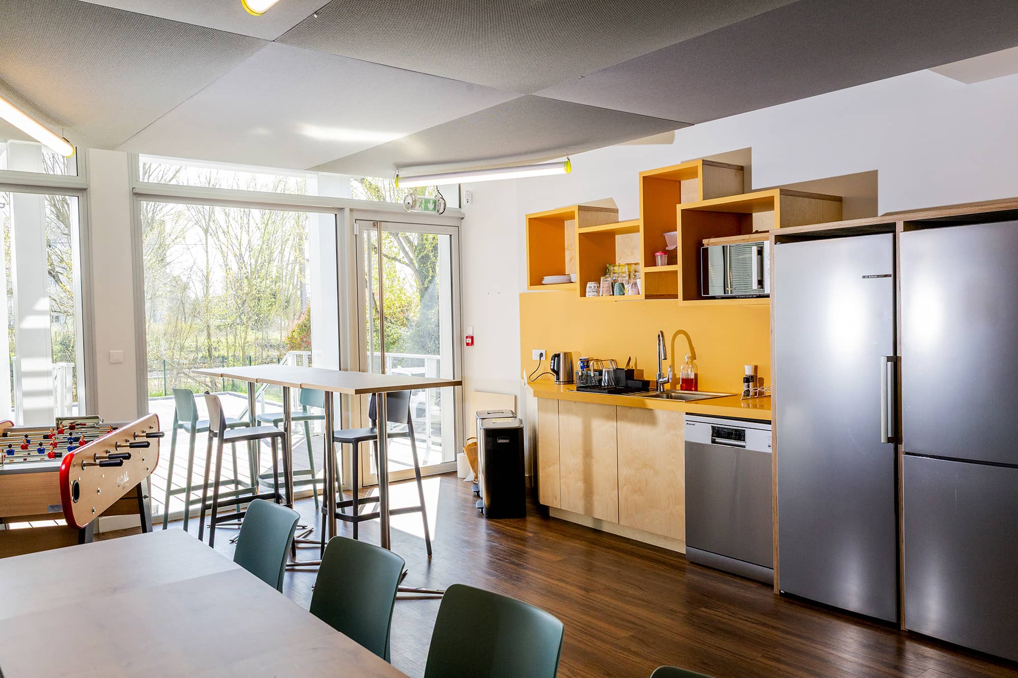 Ce projet de 1 500 m2 est un bâtiment connecté et autonome. Le design est structuré autour du confort auditif. Chaque détail est pensé pour être une réponse au bruit, à la lumière et à l’usage. L’agence David Dalidec signe un lieu de travail à l’image de JDC : innovant, exigeant et humain.