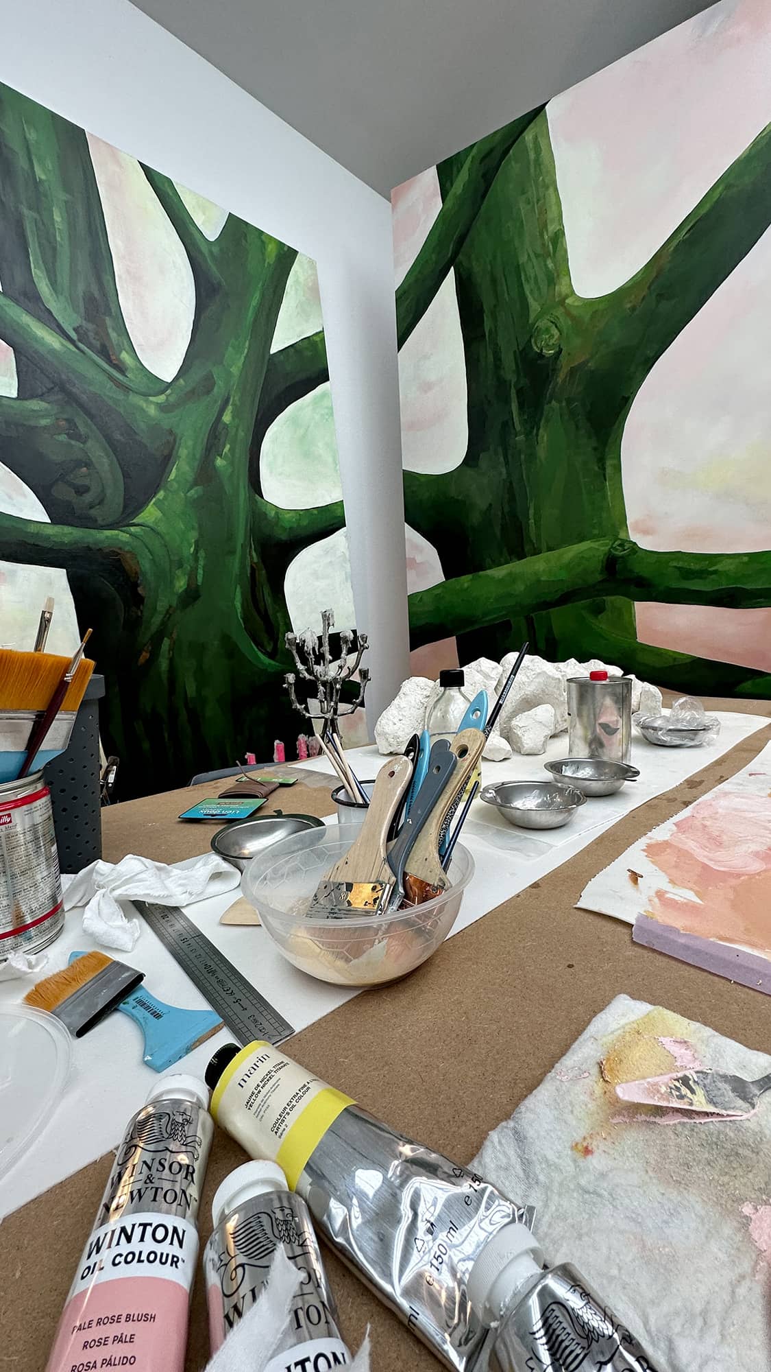 Les arbres sont pour moi des personnages, des témoins silencieux du temps. À travers la rugosité de leurs écorces, l’ancrage de leurs racines, j’entretiens un dialogue tactile avec eux. Je cherche à renouveler notre regard sur les arbres, trop souvent perçus comme de simples éléments du décor urbain, pour les révéler comme des êtres sensibles et intelligents.
