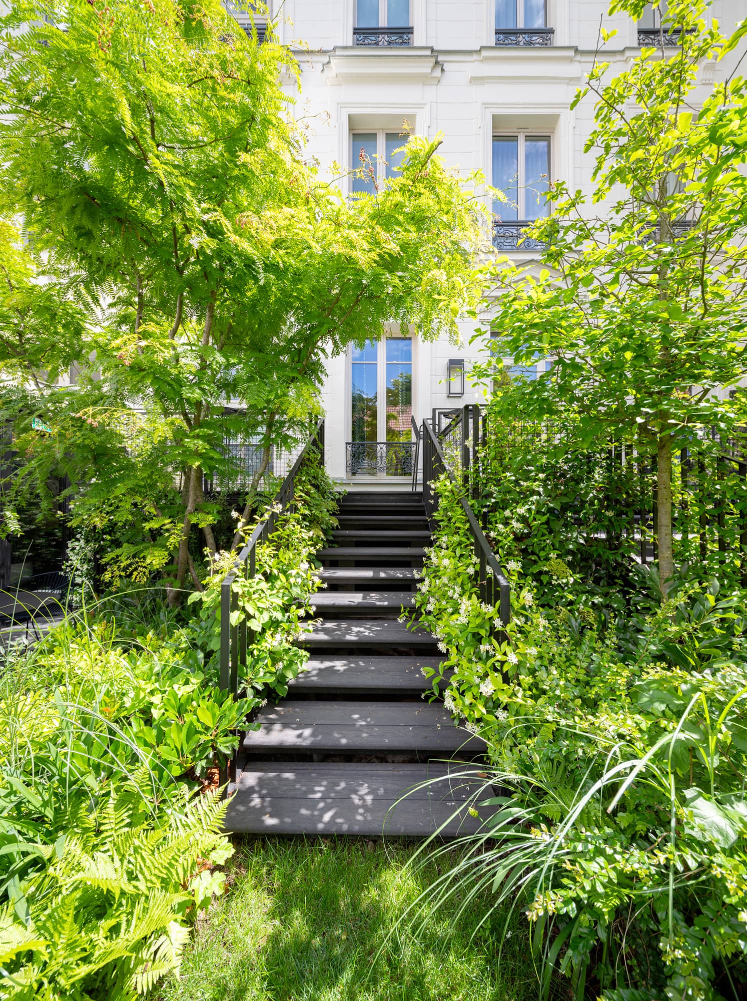 Pour la restructuration du jardin du Royal Monceau, nous avons respecté les arbres existants tout en insufflant une nouvelle richesse végétale, une harmonie des couleurs, et une ambiance plus naturelle. À l’hôtel La Fantaisie, dans le quartier Cadet à Paris, j’ai voulu rendre hommage à l’histoire maraîchère du lieu avec des arbres fruitiers et des plantes grimpantes qui s’élèvent jusqu’au rooftop, offrant une vue spectaculaire sur la ville. Enfin, à La Fondation dans le 17e arrondissement de Paris, nous avons conçu plus de 1 000 m² de jardins suspendus, une véritable forêt urbaine offrant aux usagers un contact direct avec la nature en hauteur.