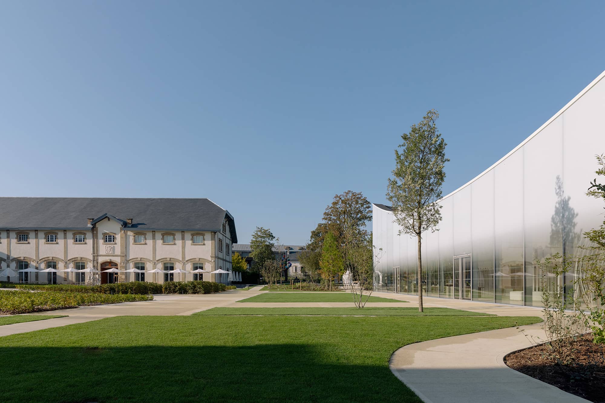 Pour Les Airelles Versailles, j’ai eu la chance de réinventer un jardin dans l’enceinte même du Château de Versailles. Il s’agissait de rendre hommage à Le Nôtre sans tomber dans le pastiche, en introduisant des matériaux contemporains comme l’inox poli miroir et des structures métalliques inspirées du vocabulaire classique. Au 5 Particulier à Neuilly-sur-Seine, j’ai dessiné un jardin intime et luxuriant, pensé comme un refuge personnel, mêlant grands arbres, sous-bois et fleurs blanches.