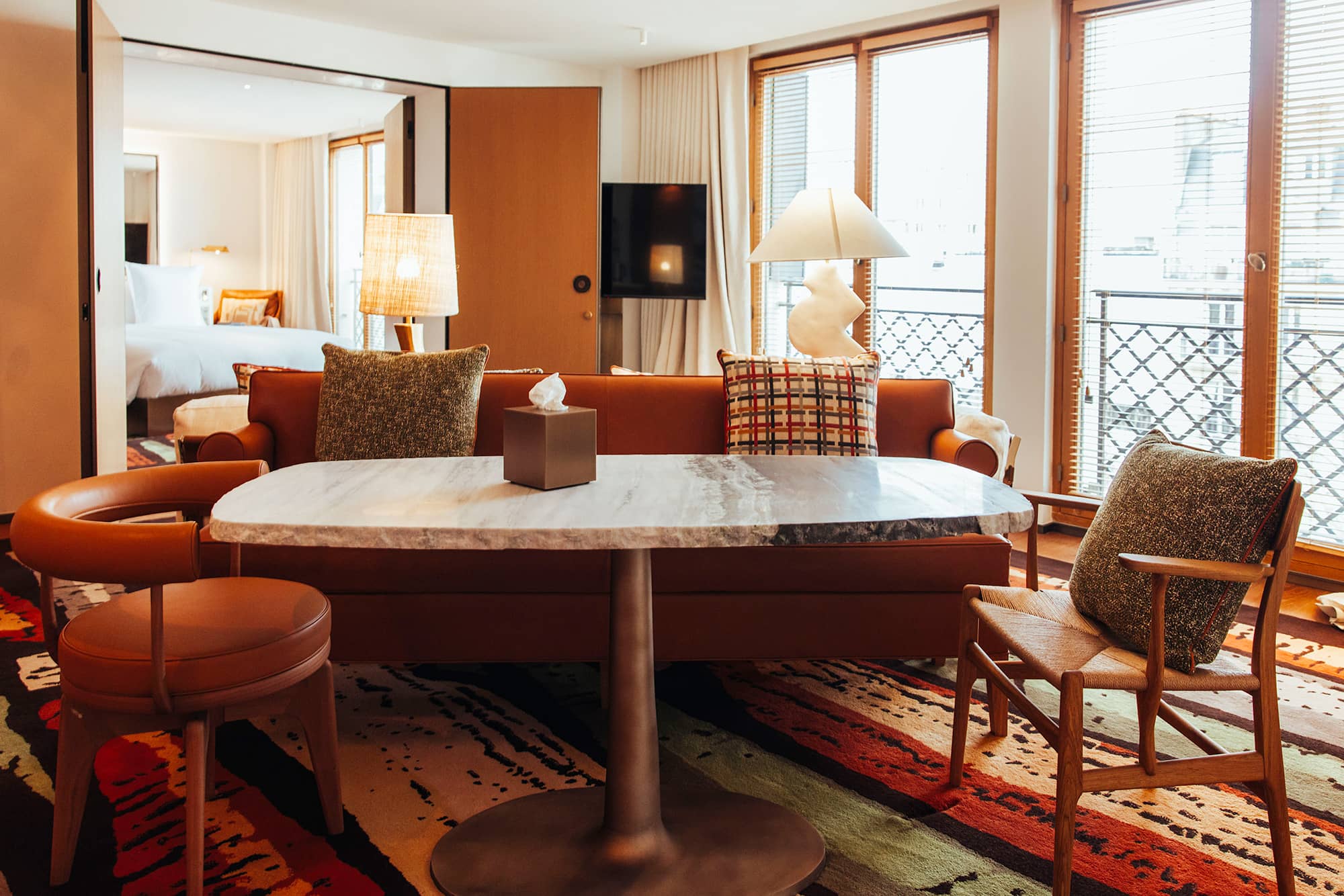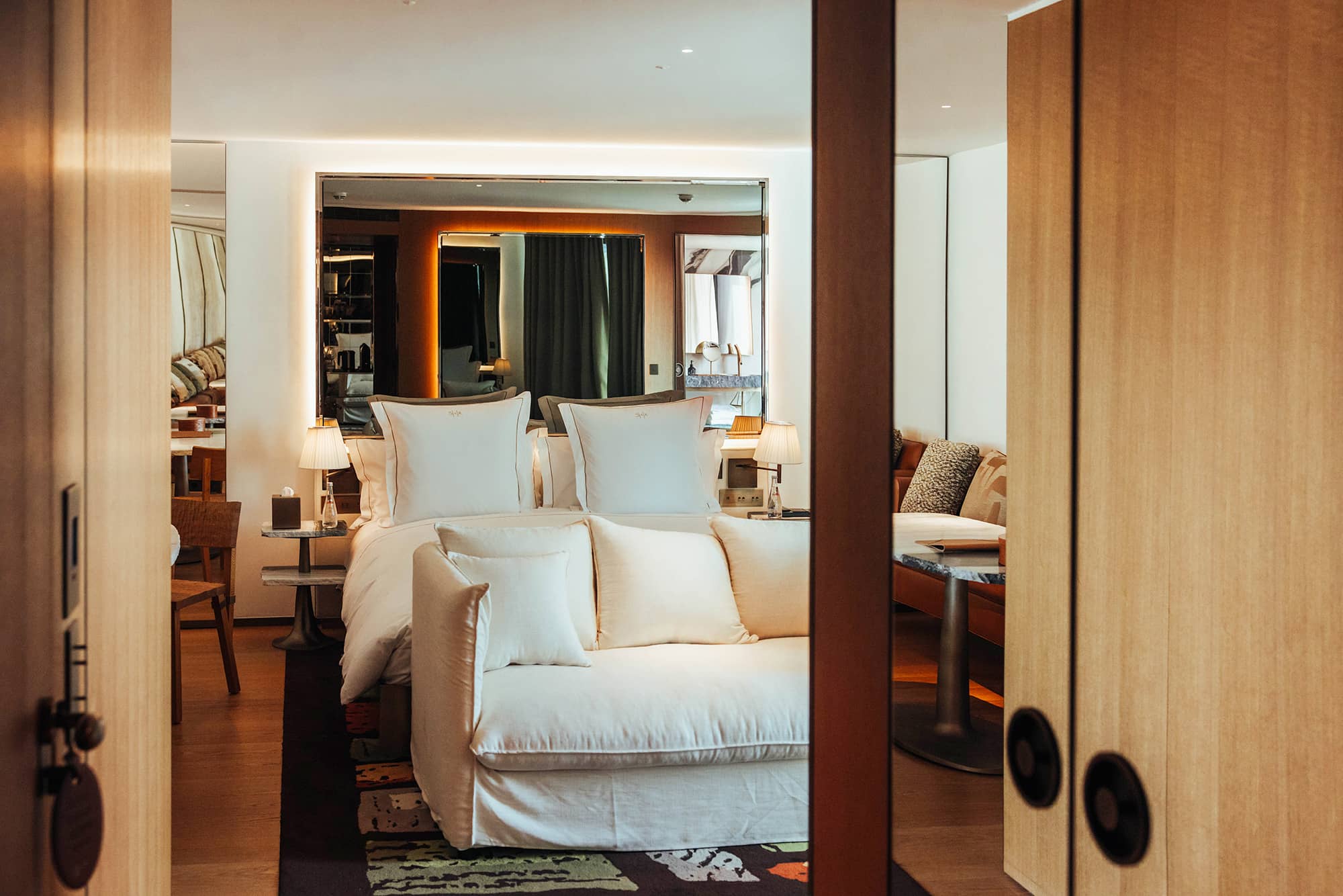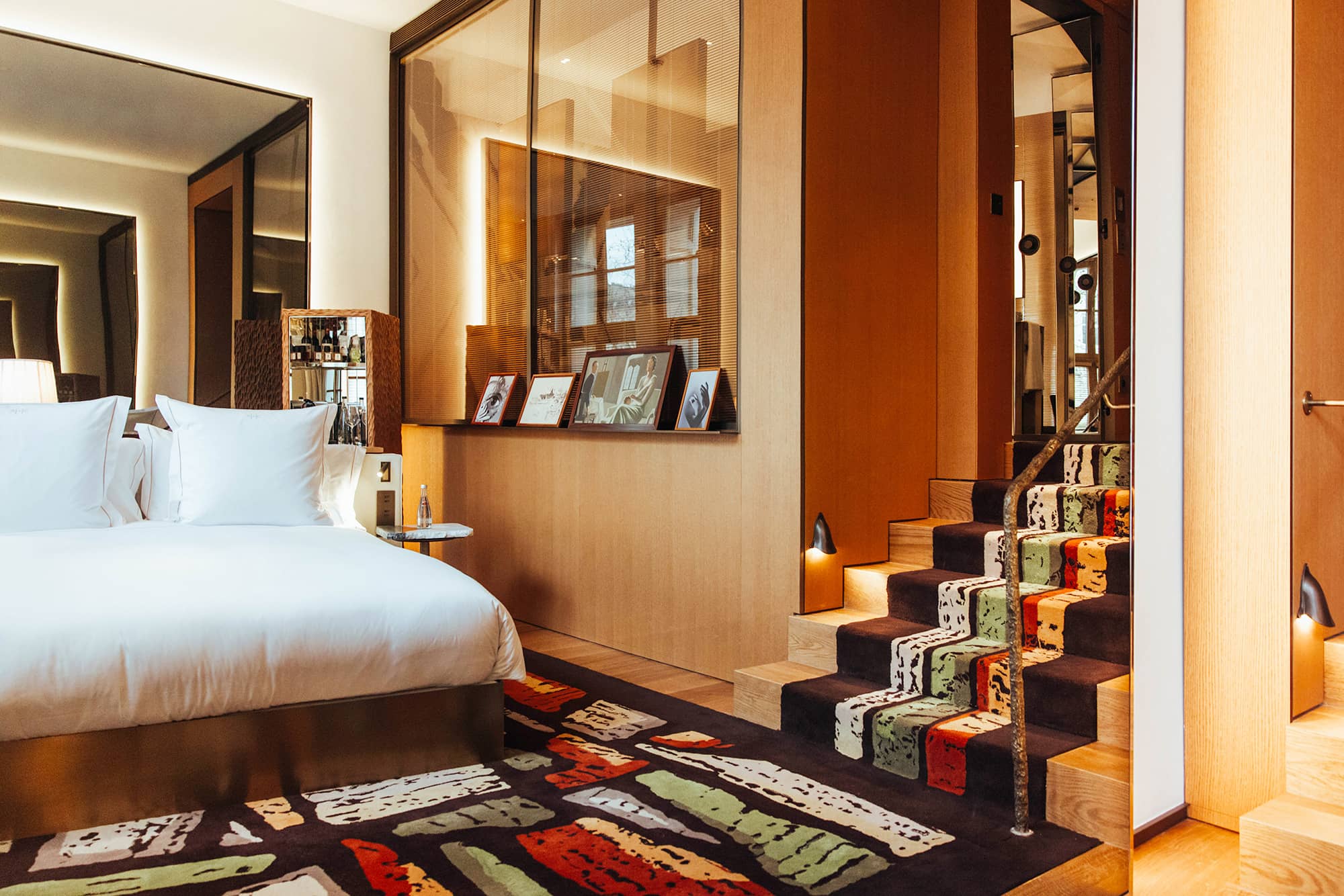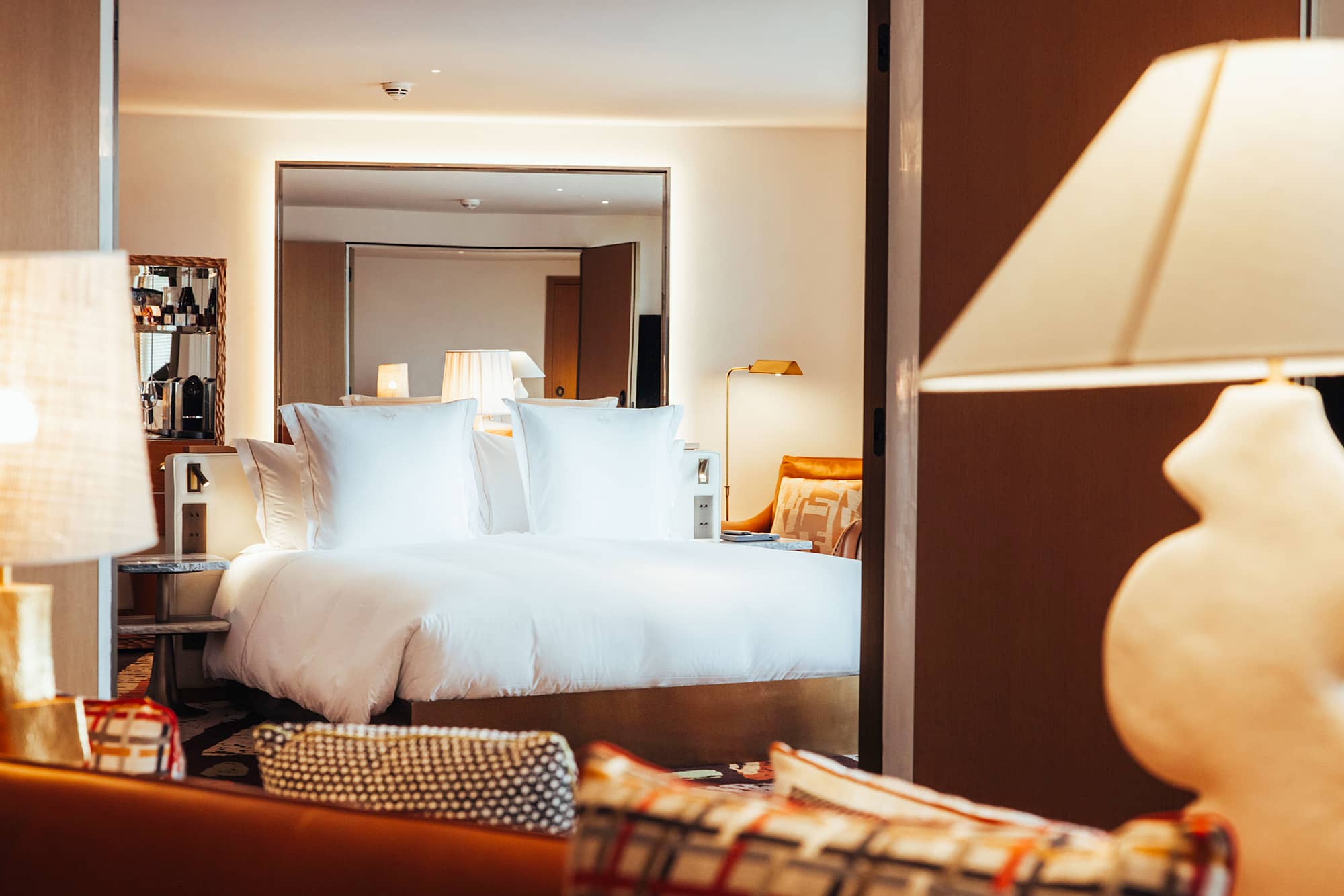 Une collaboration avec Le Bon Marché souligne l’art de vivre du 7e. Les produits de La Grande Épicerie de Paris se retrouvent avec trois cocktails prêts à déguster dans les mini-bars.