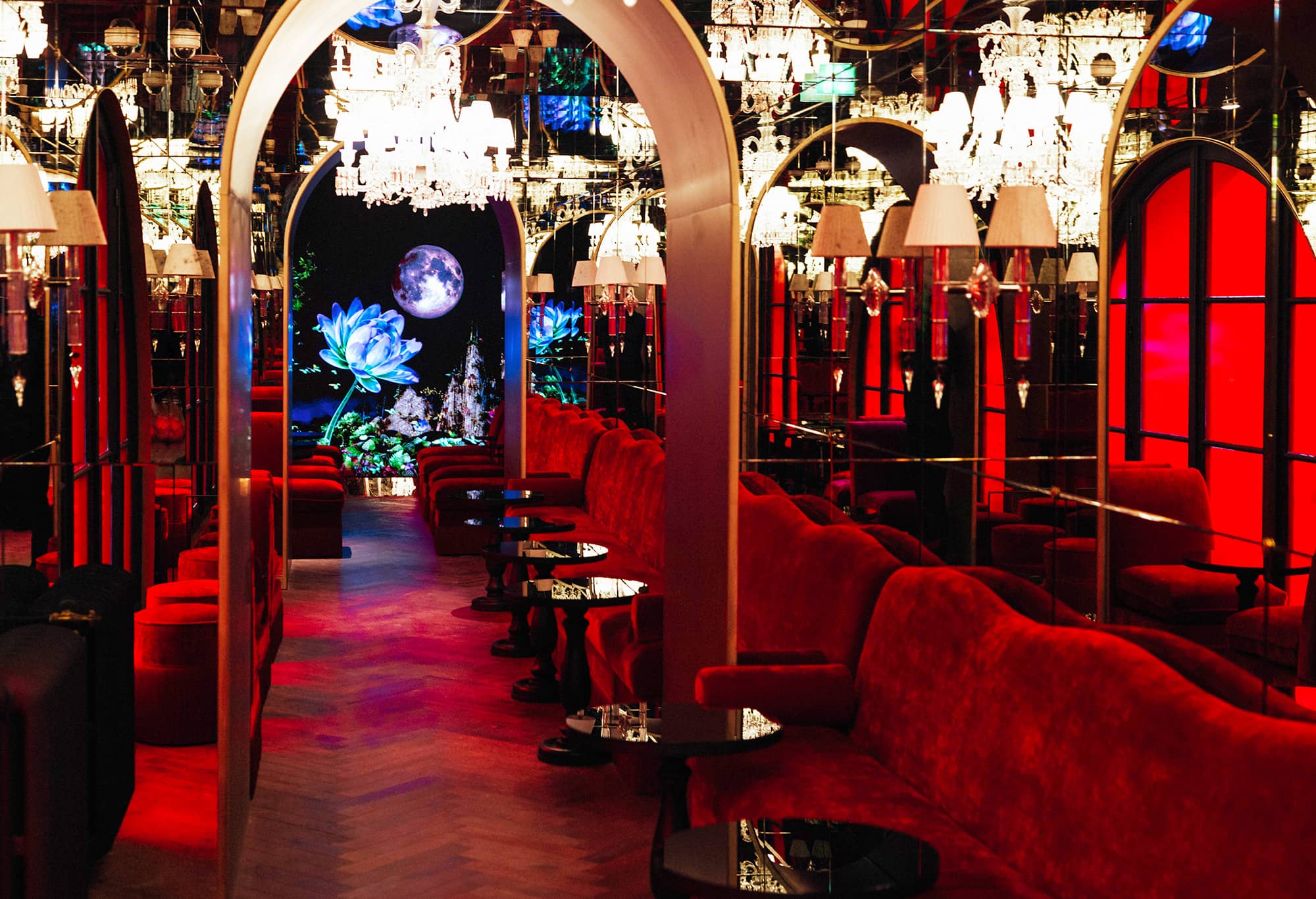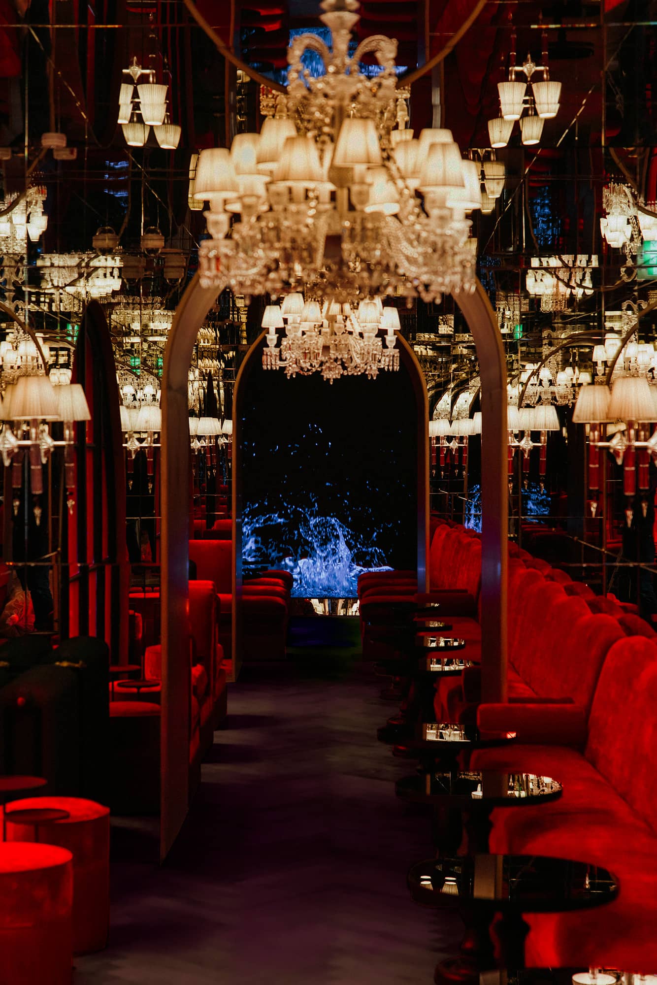 Effet wouah avec l’Iconic Galerie qui se situe à gauche de l’entrée. Cet espace dédié aux événements, défilés, cocktails, dîners privés est imaginé par le studio de création de Karine Journo. L’Iconic Galerie incarne l’art de vivre à la française avec ses 200 miroirs et sa collection de lustres Baccarat. L’ambiance est électrique, vibrante et entièrement rouge. Dotée d’un écran digital géant, l’Iconic Galerie permet de vivre une expérience sensorielle et connectée. Lors de l’ouverture du SAX, la directrice artistique a convié le Studio Drop the Spoon afin de réaliser un film honorant l’écologie, thème cher et représentant les valeurs de Philippe Journo et de la Compagnie de Phalsbourg.